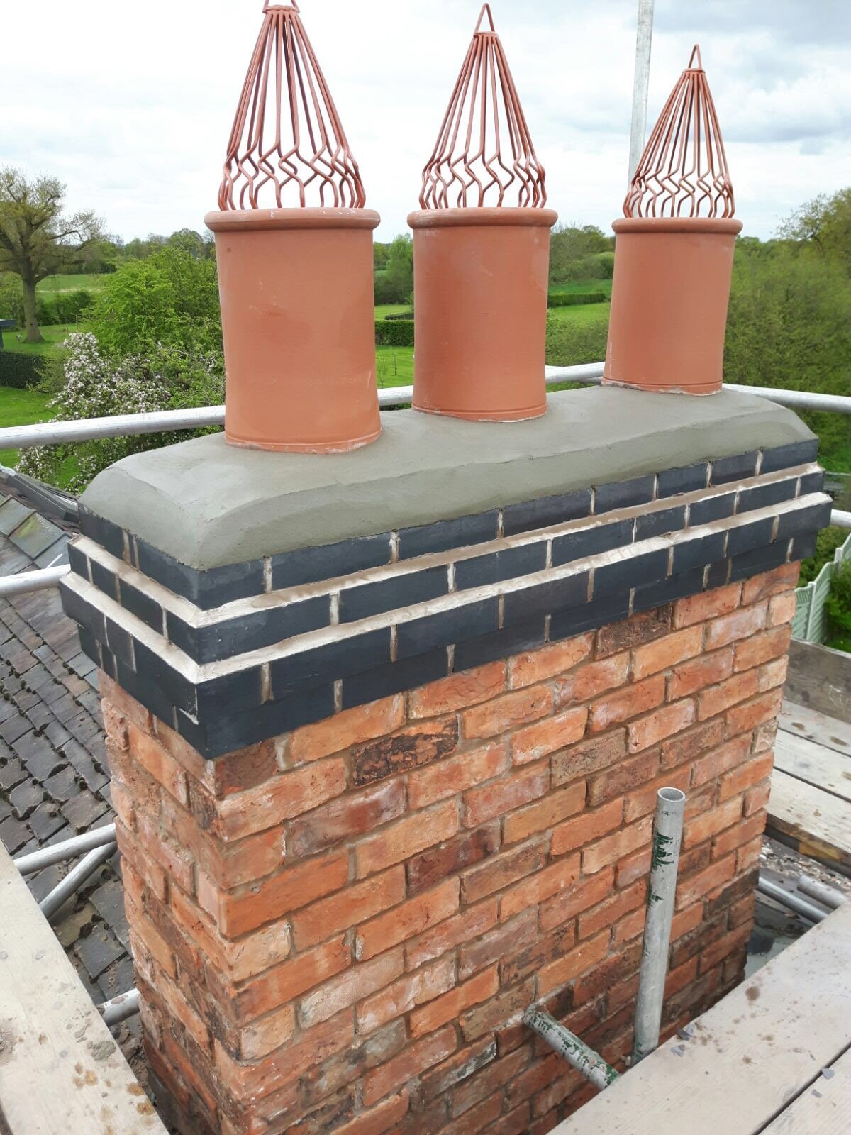Our chimney repair services include re-pointing the brickwork, replacing damaged lead flashing, chimney stack rebuilding, and fitting new chimney pots and cowls.